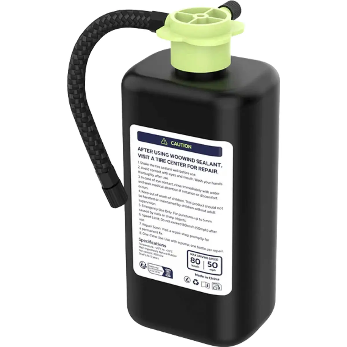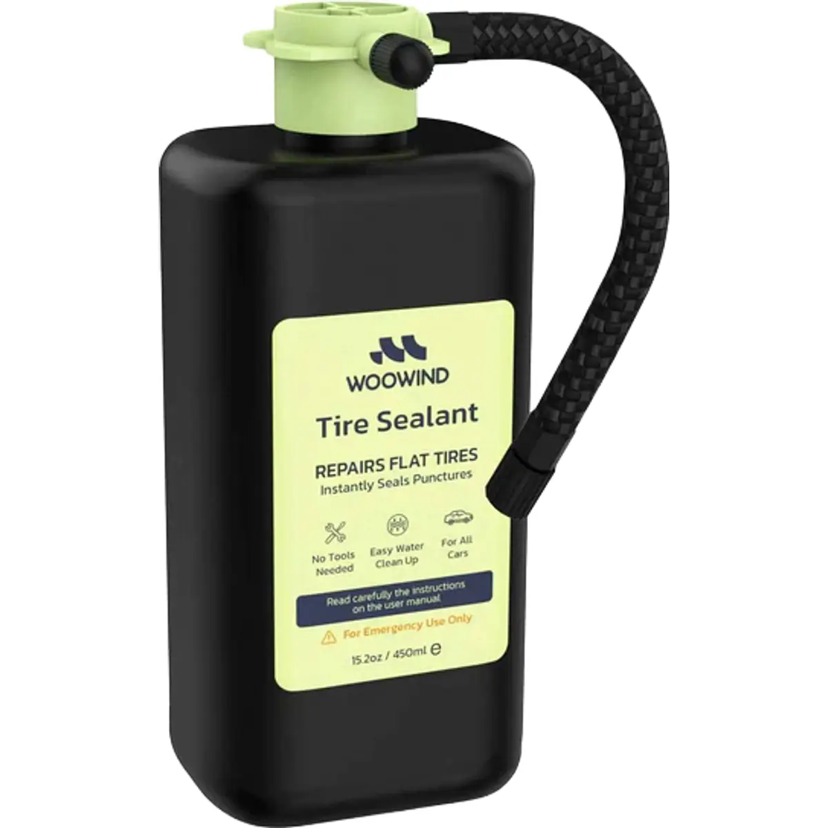 O selante Woowind é uma solução de reparação de pneus formulado para ser amigo do ambiente, este líquido não é tóxico, é inodoro e não inflamável, garantindo uma aplicação segura sem danificar o pneu ou a jante.
