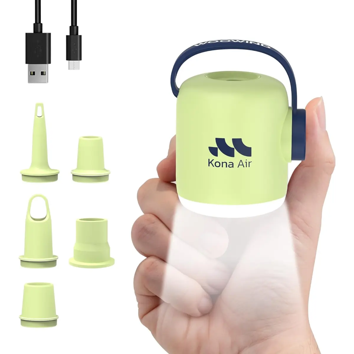 O Woowind Kona Air é um mini compressor de ar 3-em-1 ultra-portátil e leve, concebida para maximizar a conveniência em atividades ao ar livre.