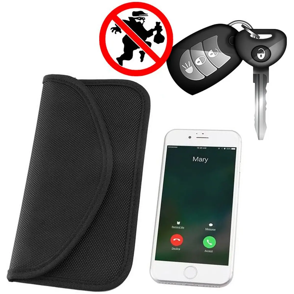 Bolsa de proteção tipo gaiola de Faraday concebida para bloquear sinais eletromagnéticos e proteger dispositivos eletrónicos contra acessos não autorizados. Ideal para chaves de automóveis, telemóveis e outros dispositivos sensíveis, garantindo segurança adicional e prevenção de clonagem ou roubo de sinal.