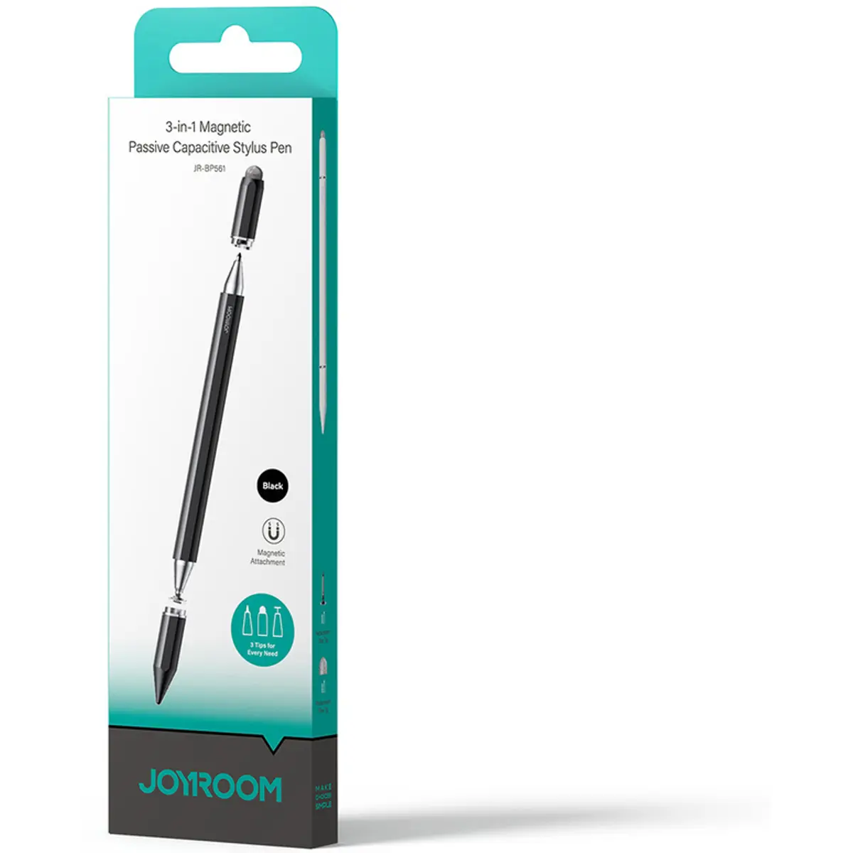 JOYROOM JR-BP561 - Caneta Stylus capacitiva 3-em-1 (disco de precisão + esferográfica + borracha touch) - Preto