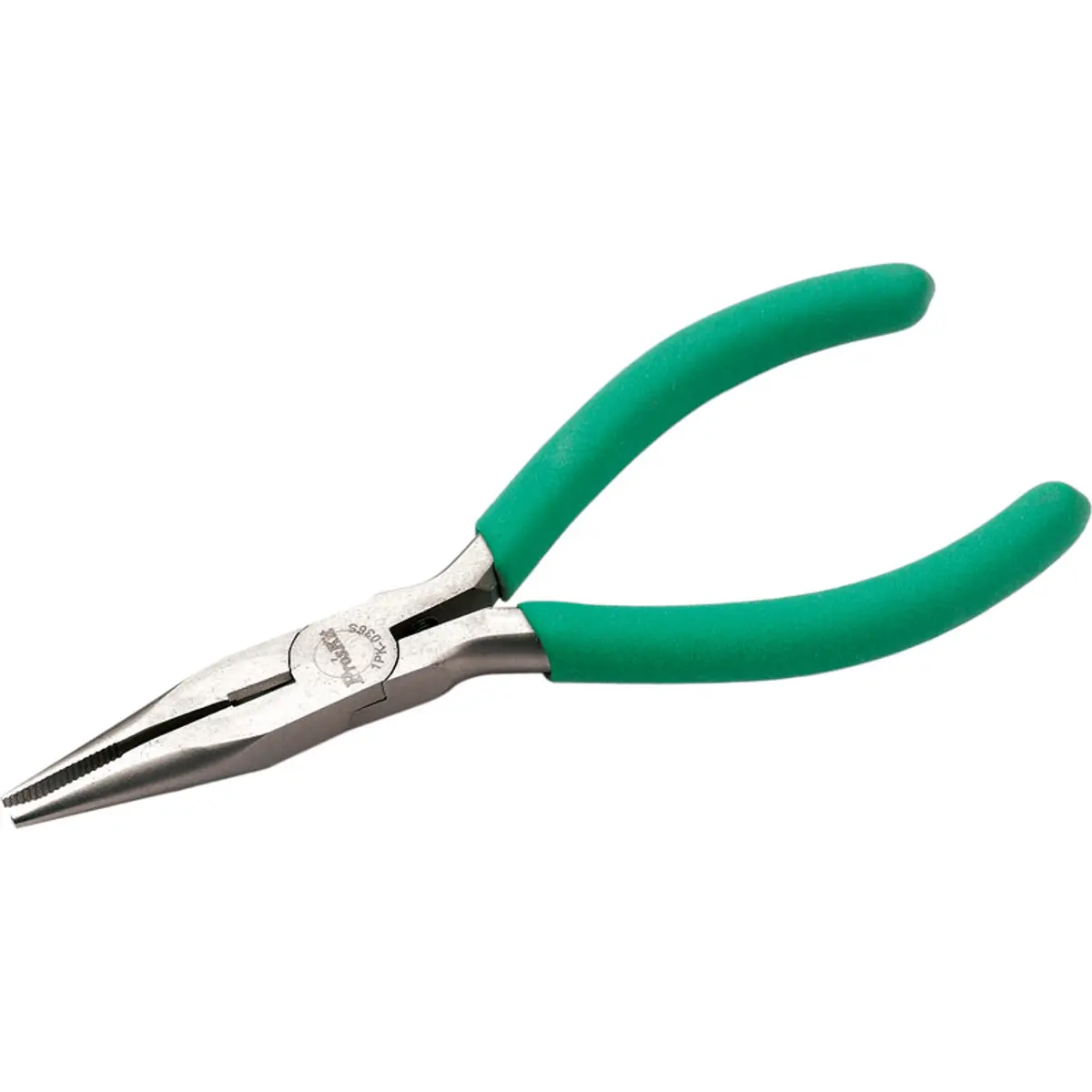 O alicate de pontas para eletrónica é uma ferramenta de corte geral com punho isolado, fabricada em aço S45C, com lâminas serrilhadas de 35x12 mm. Permite cortar cobre até 1,6 mm com precisão, ideal para trabalhos de montagem e reparação eletrónica. Proporciona durabilidade, segurança e controlo ergonómico em aplicações elétricas e de cablagem.