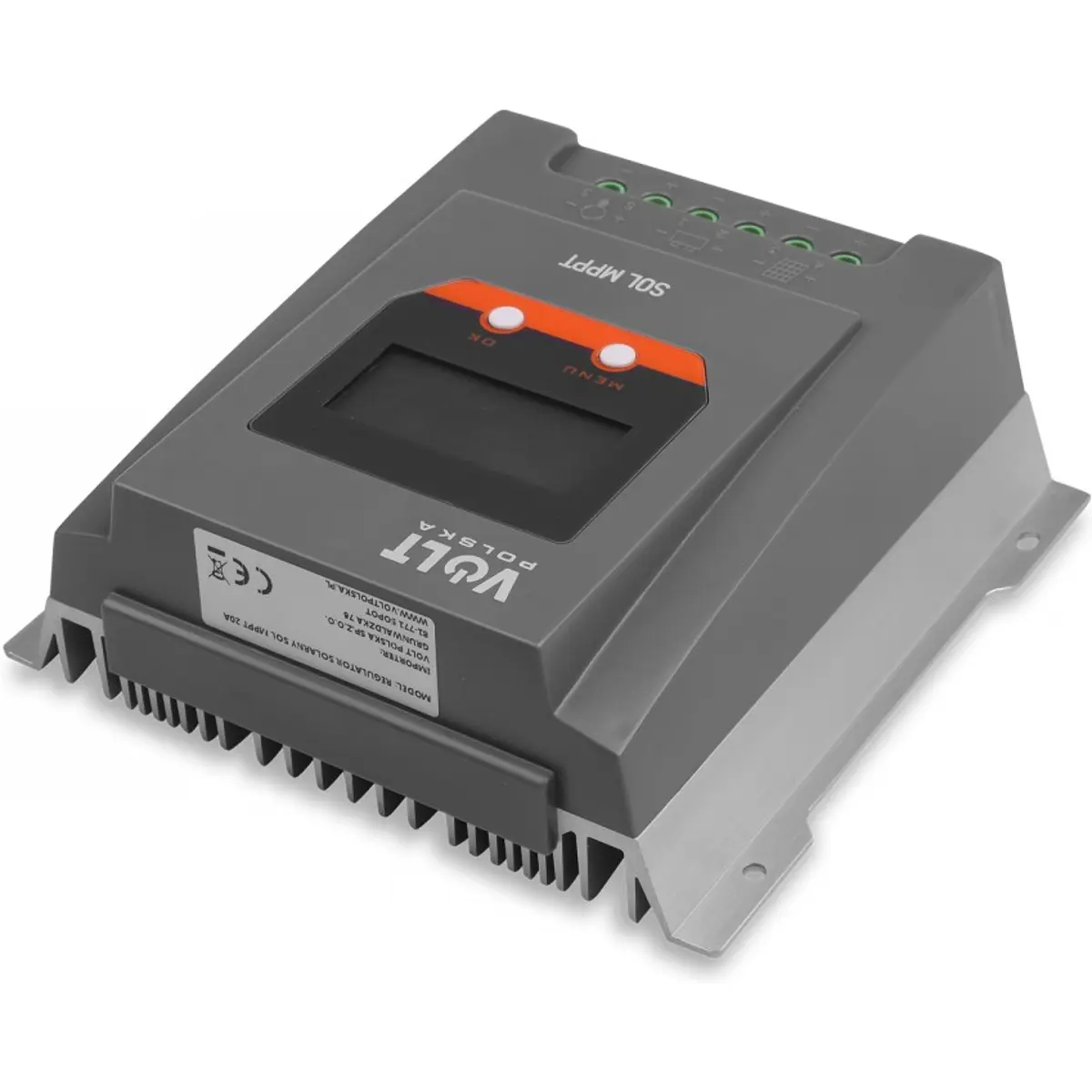 Regulador solar O regulador SOL MPPT 20A foi projetado para carregar baterias através dos painéis solares. Este dispositivo moderno e multifuncional executa o carregamento com base na tecnologia de carregamento MPPT mais recente e eficiente.