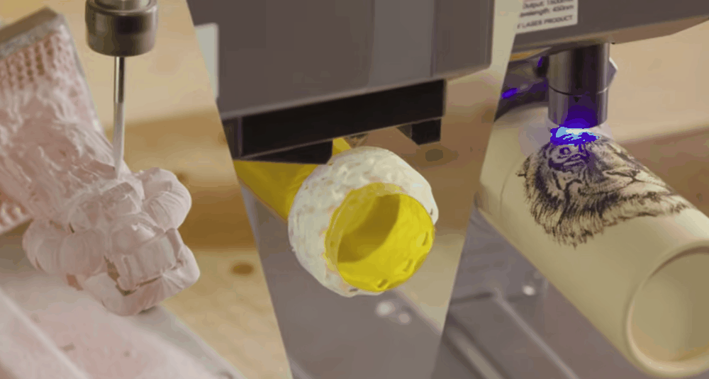 • Escultura rotativa de 4 eixos e gravação a laser.