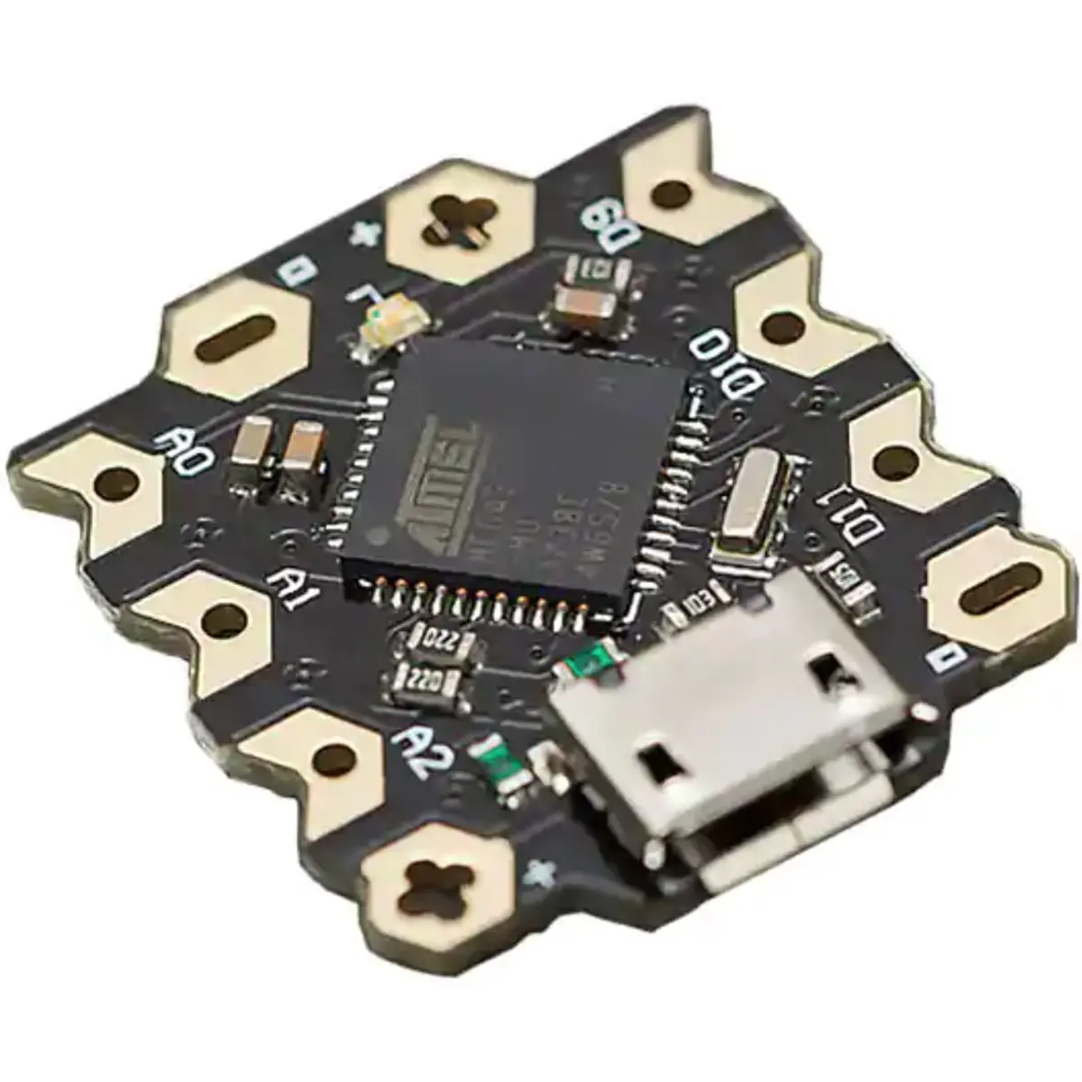 Esta placa está equipada com o bootloader Arduino Leonardo e, com um tamanho de apenas 22x20mm, é a solução ideal para pequenos projetos de electrónica.
