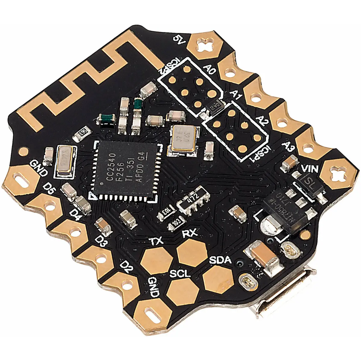 Com a interface de I/O dourada em forma de V, estas placas podem ser costuradas diretamente nas roupas com fio condutor, permitindo a fácil criação de projetos do tipo Wearable.