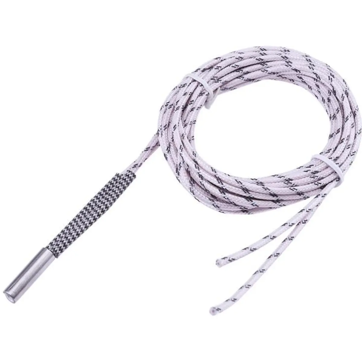 Resistência de aquecimento para impressoras 3D operando a 12V, com 50W de potência, cápsula cerâmica Ø6x20mm e cabo de 200 cm de comprimento. Compatível com impressoras que utilizam blocos de aquecimento de 6 mm de diâmetro, facilitando a substituição de componentes danificados ou desgaste, sem necessidade de alterações elétricas. Ideal para manutenção e melhoramentos simples em sistemas de aquecimento 12V.