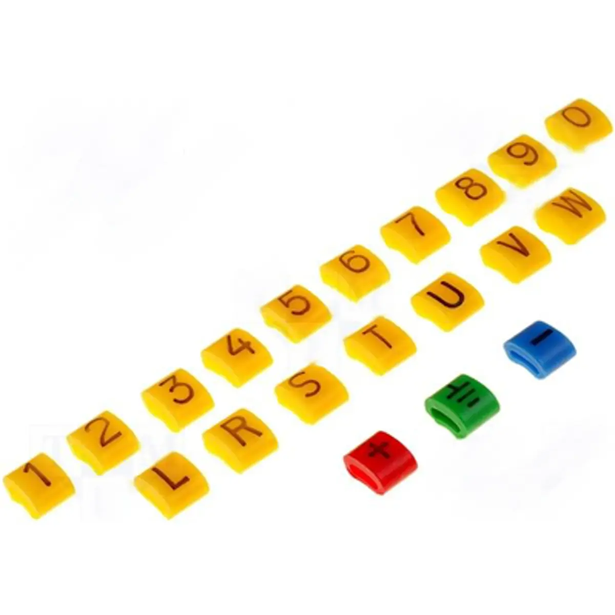 Kit de marcadores de cabos com 600 unidades, 30 unidades por tipo, para fios Ø1.10-2.50mm. Inclui números 0-9, letras R, S, T, U, V, W, L e símbolos de identificação: mais, menos e terra. Ideal para identificação rápida e organizada de cabos em instalações elétricas, automação e telecomunicações. Permite reposicionamento fácil e compatibilidade com etiquetas reutilizáveis. Proporciona identificação clara e reduz erros durante montagem e manutenção.