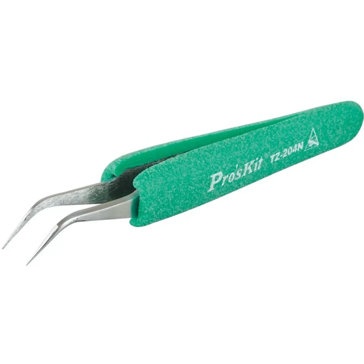 Pro'sKit TZ-204N - Pinça de precisão Ergo-Grip em inox ESD - pontas curvas - 120mm
