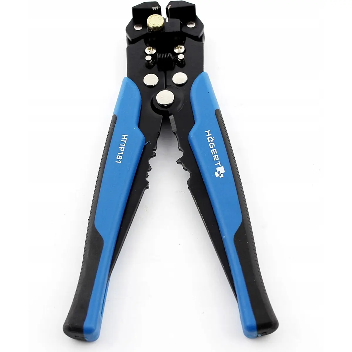 Alicate para cortar e descarnar fios elétricos unifilares e multifilares.