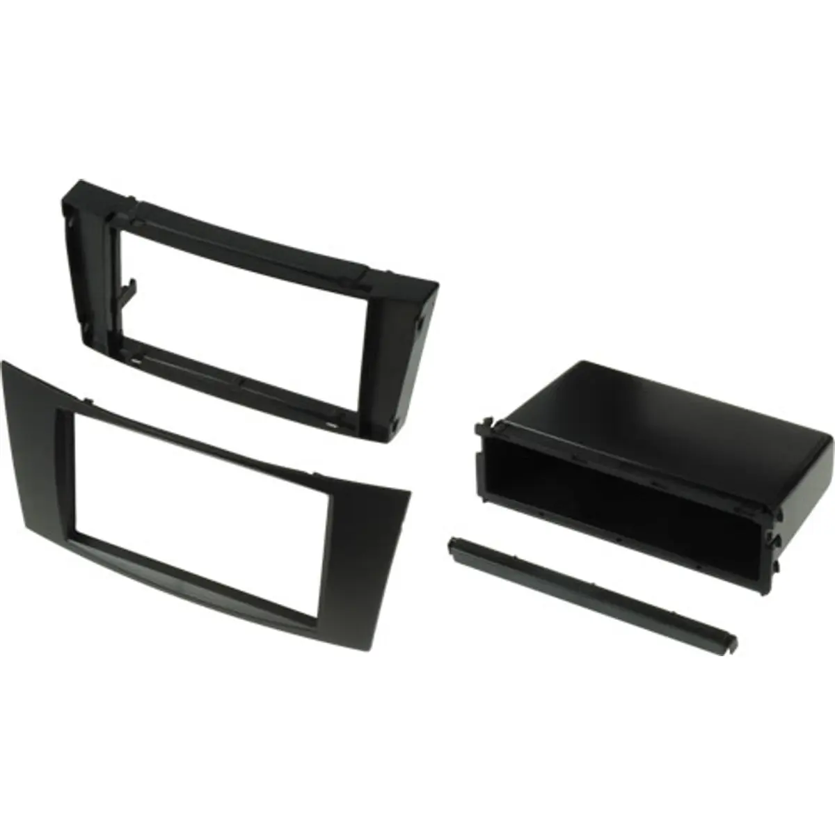 Esta moldura de 2-DIN preta é compatível com a série E W211, de 2002 em diante, para rádios com abertura de 100 x 181 mm e frente sem aro de 97 x 171 mm. Proporciona um encaixe estável e um acabamento discreto no painel, mantendo o visual original do interior. Ideal para substituir molduras antigas, oferecendo montagem direta, sem alterações no painel e compatibilidade com rádios de montagem 2-DIN.