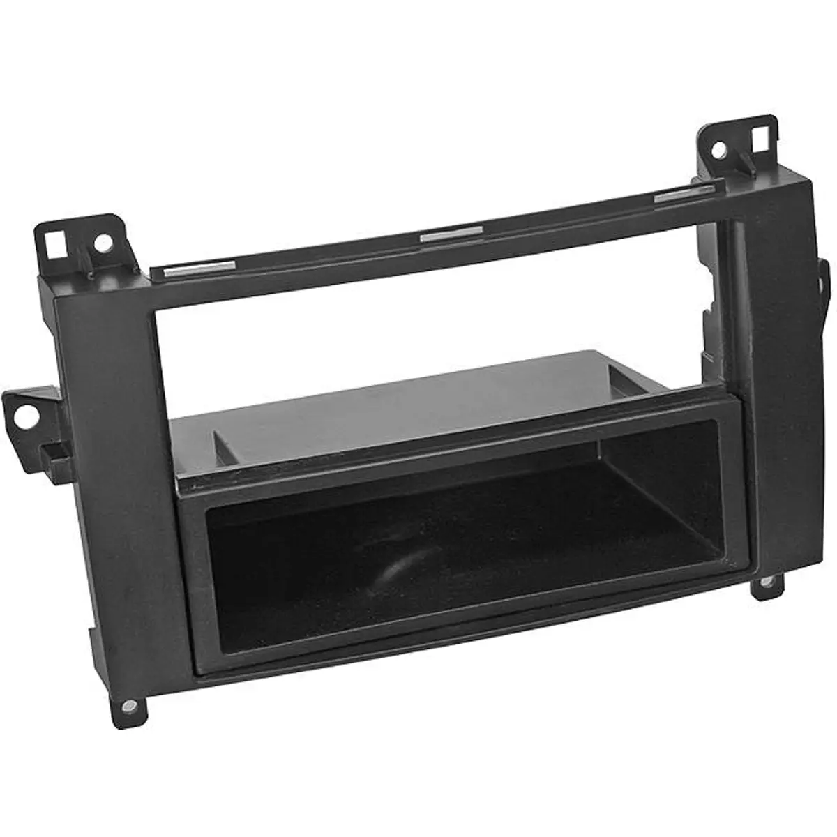 Moldura de montagem para rádio automóvel, formato 2-DIN ISO, em acabamento preto. Compatível com os modelos A-Class (C169) 11/2004->07/2010; A-Class (W169) 10/2004->04/2012; B-Class (T245) 06/2005->06/2011; Vito/Viano (W639) 04/2006->05/2014. Oferece encaixe estável, acesso aos conectores originais e um visual discreto que combina com o interior do veículo. Ideal para atualizar o sistema de áudio mantendo a harmonia do painel.