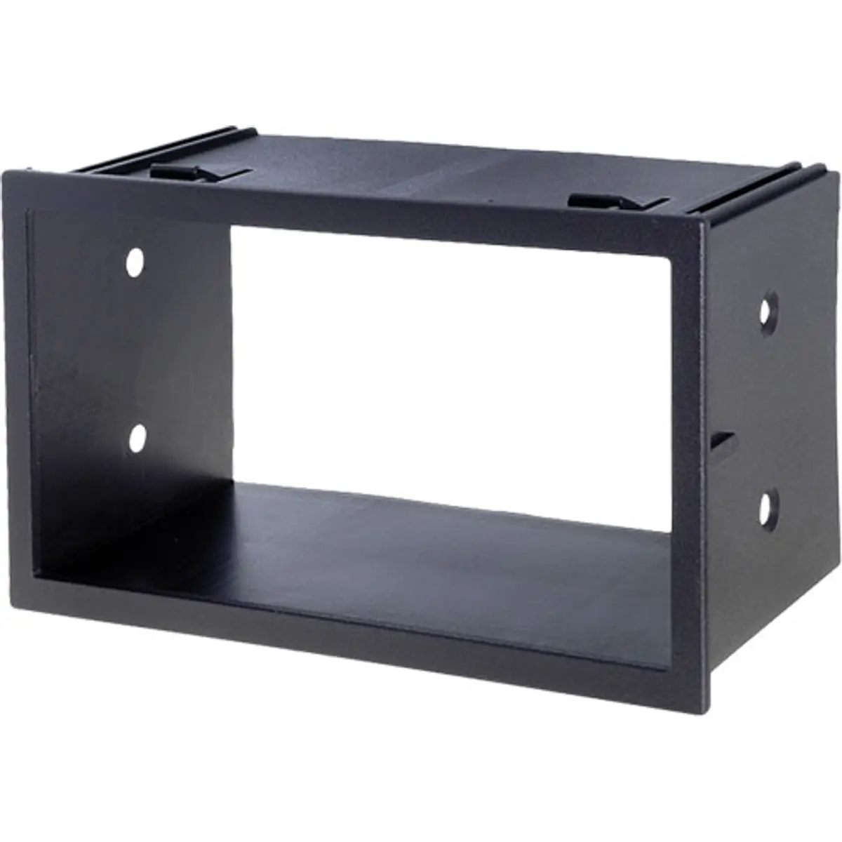 Moldura para rádio 2 DIN em acabamento preto, compatível com Seat Cordoba 2003, Seat Ibiza 2003, VW Golf IV (1997-2006), VW Lupo (1998-2005) e VW Passat (1996-2005). Permite a instalação de rádios 2 DIN sem modificar o painel do veículo, com encaixe estável e acabamento discreto. As dimensões de abertura são 172x97mm na frente, 190x119mm na frente externa e 177x101mm na abertura traseira, assegurando compatibilidade com o painel sem folgas.