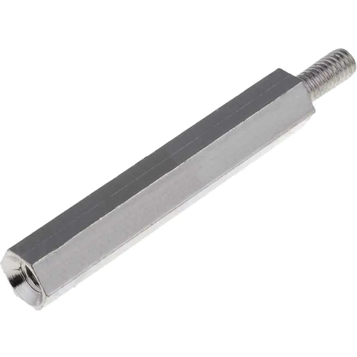 Espaçador fêmea/macho com roscas internas e externas M3, fabricado em latão com cobertura níquel, projetado para proporcionar um espaçamento de 30 mm. Possui formato hexagonal e comprimento de rosca de 10 mm, com chave de 5 mm. Ideal para montagem precisa em componentes mecânicos, oferecendo resistência química e durabilidade. Compatível com parafusos M3 e aplicações onde é necessária uma fixação robusta e de qualidade.