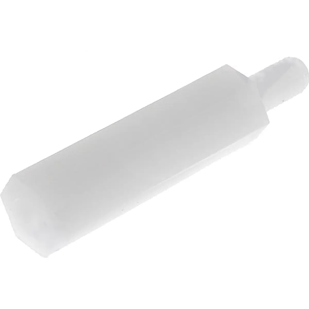 Espaçador fêmea/macho M3 em poliamida com distância de 20 mm, roscas interna e externa M3, formato hexagonal e chave de 5,5 mm. O design em poliamida oferece leveza e resistência, com passo de rosca de 0,5 e comprimento de rosca de 6 mm, adequado para montagens precisas de componentes com rosca M3. Ideal para aplicações em montagem de estruturas, máquinas e prototipagem, assegurando encaixes fiáveis e duráveis.