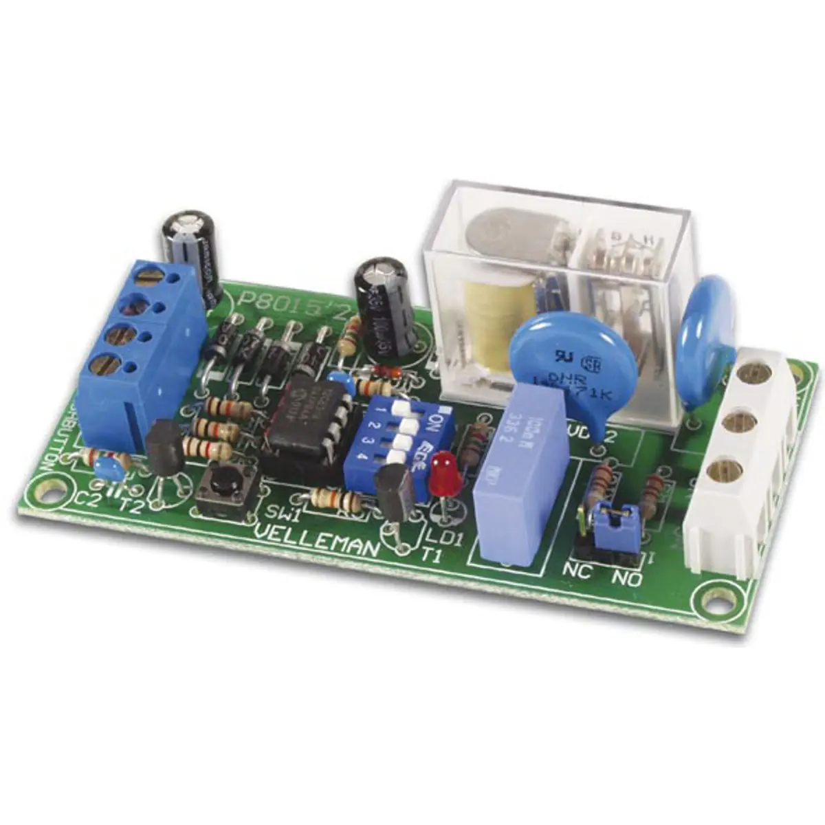 Com 14 funções diferentes incluindo relógios, interruptores, intervalo de flash, função aleatória, etc. Dois pré-programadores de atraso. Modo de controlo para atrasos de 2s a 12 dias. Botões de controlo. EEPROM para armazenamento dos tempos em caso de falta de corrente. Relés com filtragem. Apropriado para controlar lâmpadas incandescentes, lâmpadas de halogéneo, fluorescentes, ventoinhas, válvulas, buzzers, entre outros.