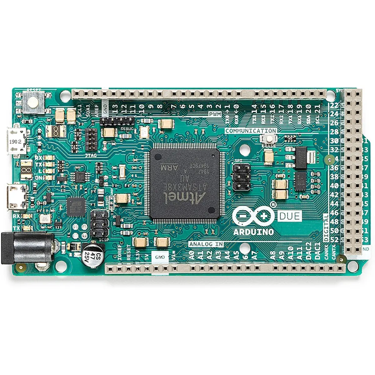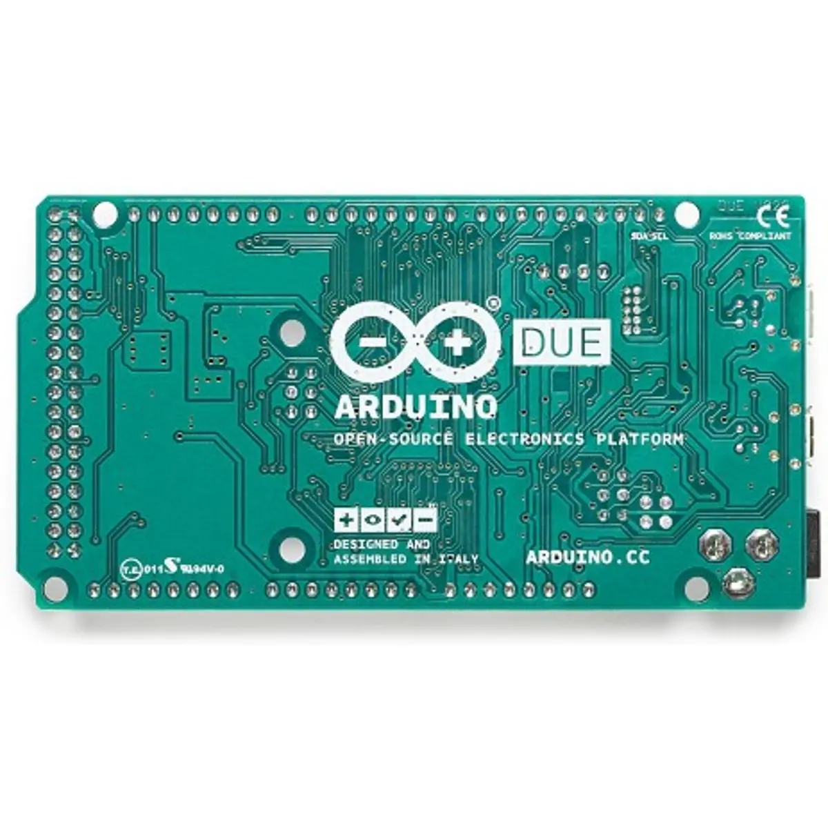O Arduino Due é um microcontrolador baseado no CPU Atmel SAM3X8E ARM Cortex-M3. É a primeira placa Arduino baseada num microcontrolador de núcleo ARM de 32 bits. Tem 54 pinos de entrada/saída digitais (dos quais 12 podem ser utilizados como saídas PWM), 12 entradas analógicas, 4 UARTs (portas série de hardware), um relógio de 84 MHz, uma ligação USB OTG capaz, 2 DAC (digital para analógico), 2 TWI, uma tomada de alimentação, um cabeçalho SPI, um cabeçalho JTAG, um botão de reset e um botão de apagar.