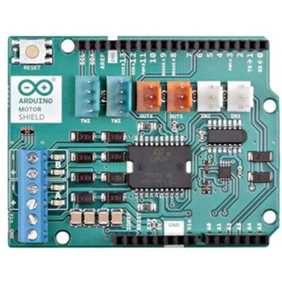 O Arduino Motor Shield baseia-se no L298, que é um duplo condutor de ponte completa concebido para conduzir cargas indutivas tais como relés, solenóides, DC e motores passo a passo.