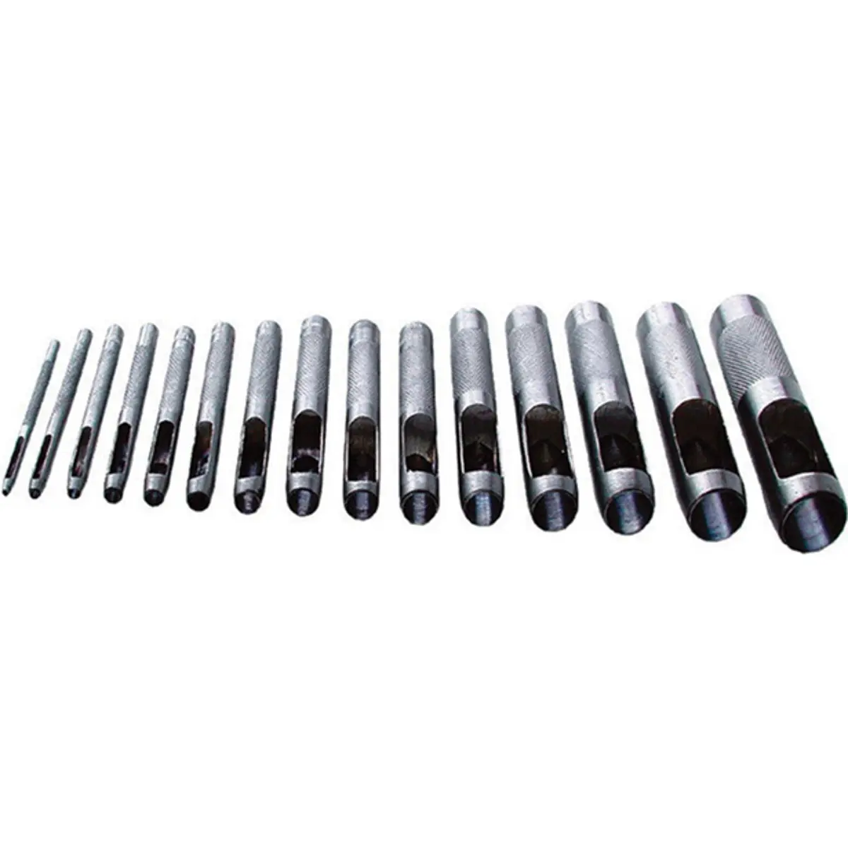 Conjunto de 15 vazadores para furos em couro e borracha, com diâmetros de 2 a 22 mm, ideal para artesanato, vestuário e reparos. Permite furos precisos e consistentes, sem rebarbas, em materiais de espessuras variadas. Feito para uso manual, com ponta afiada e construção resistente, facilita trabalhos de costura, encaixe de botões e acabamentos. O conjunto compacto oferece abrangência de tamanhos úteis e facilita o planeamento de furos, gerindo várias aplicações de design, carpintaria de couro e calçado, sem necessidade de ferramentas adicionais.