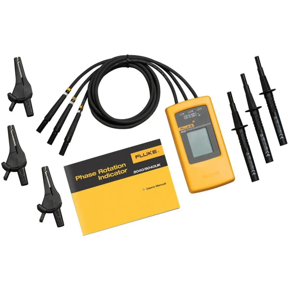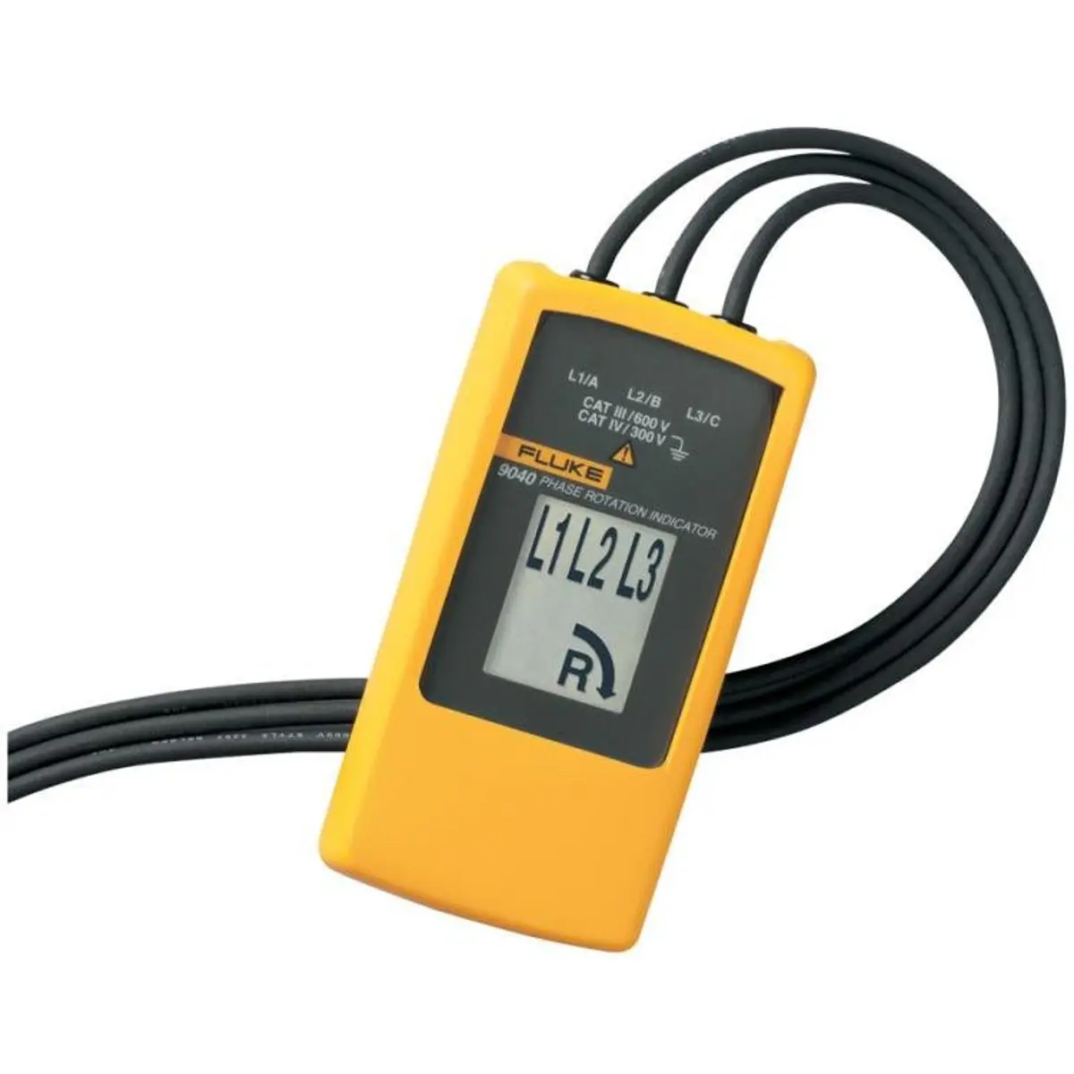 O Fluke 9040 é eficaz na medição da rotação de fases em todos os locais em que são utilizadas fontes trifásicas para alimentar motores, variadores e sistemas eléctricos. O Fluke 9040 é um indicador de campo rotativo e pode fornecer indicações claras sobre corrente trifásica, através de um visor LCD, e sobre a direcção da rotação de fases, para determinar ligações correctas. Permite a determinação rápida da sequência de fases e dispõe de gamas de tensão (até 700V) e frequência adequadas para aplicações comerciais e industriais. As sondas de teste fornecidas com o instrumento apresentam diferentes possibilidades de fixação para proporcionar um contacto seguro, especialmente em tomadas industriais.