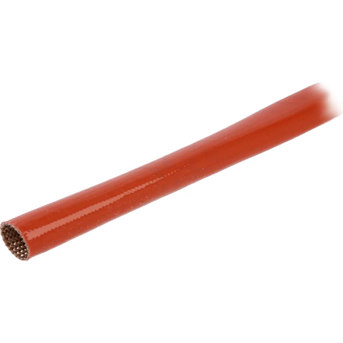 Manga de isolamento e proteção feita em fibra de vidro revestida a silicone, destinada a cabos elétricos. Oferece isolamento elétrico entre -60 °C e 250 °C, diâmetro interior de 10 mm e comprimento de 10 m. Cor vermelho-tijolo. Vendida em múltiplos de 10 metros. Versátil para cablagem industrial, oferecendo resistência térmica, flexibilidade e proteção contra impactos, com materiais de alta qualidade para aplicações que exigem isolamento confiável.