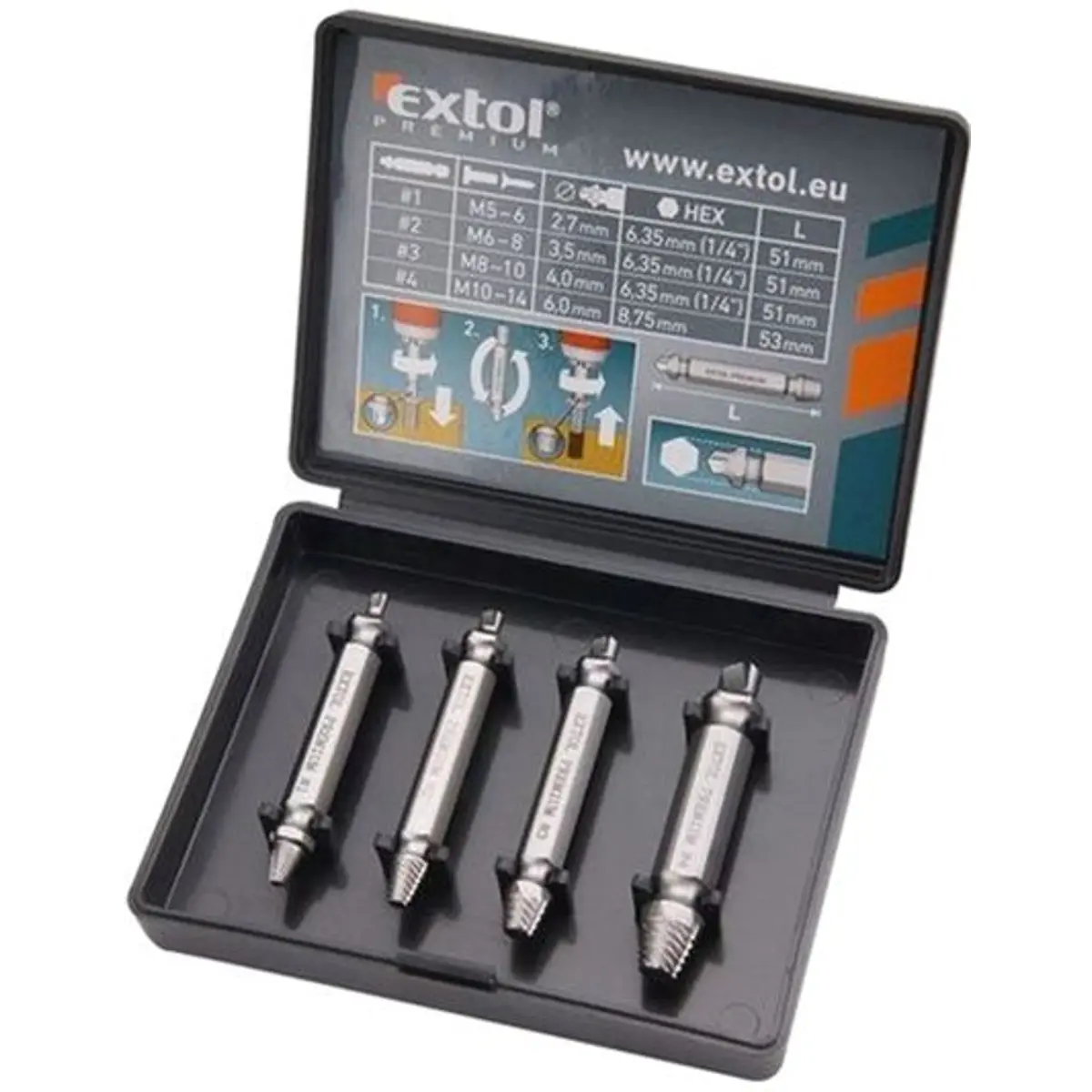 Com estes extractores poderá remover facilmente parafusos com com cabeça moída e danificada, impossibilitado de remover com uma chave normal.