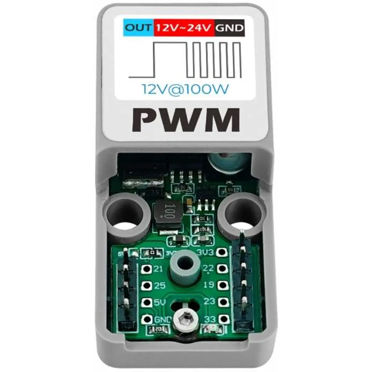 O ATOM PWM é um driver de tensão DC do tipo PWM de canal único com um MOSFET capaz de controlar cargas até 100W (@12V).