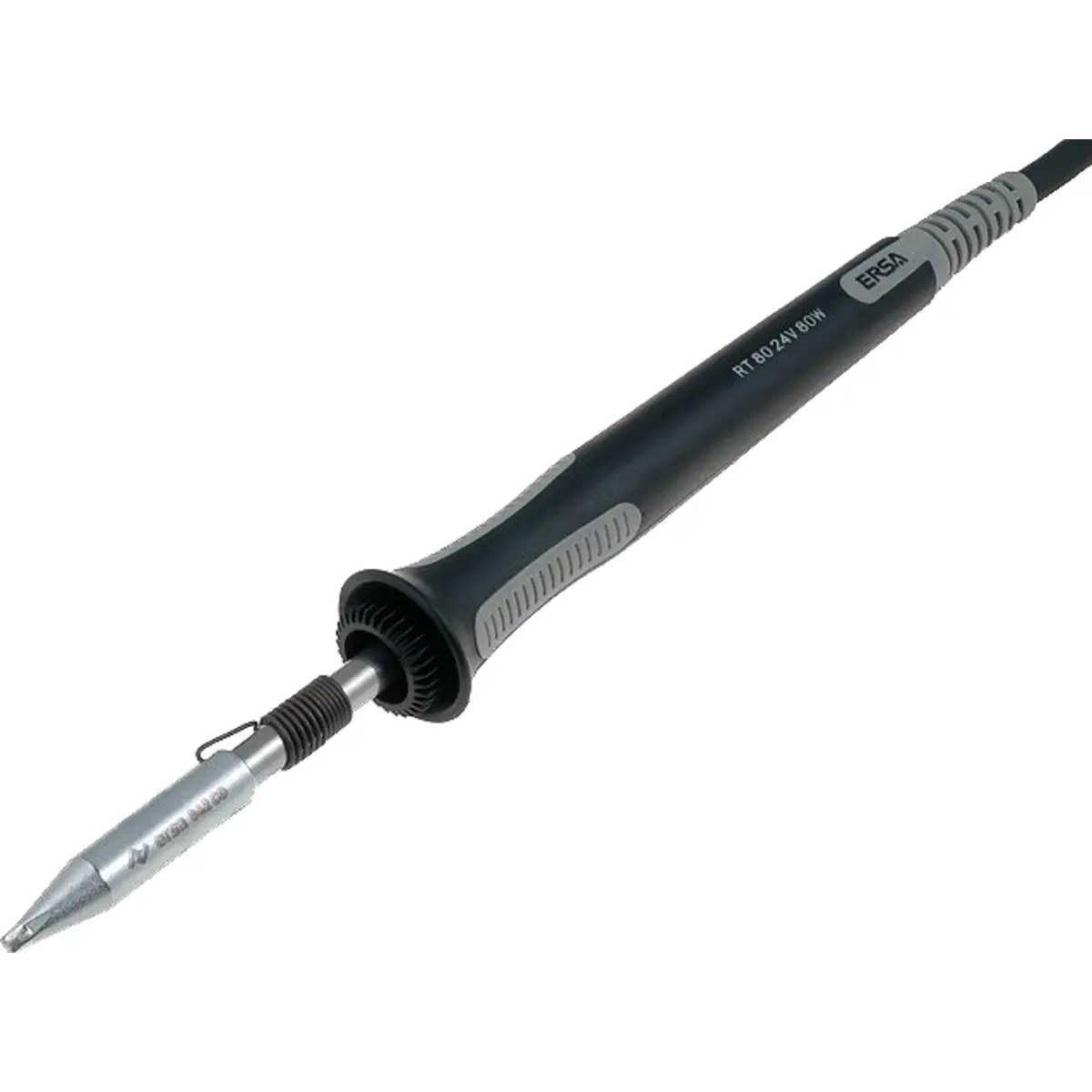 Ferro de substituição para estação de solda com potência de 80W e alimentação de 24V. Aquece até 450ºC em cerca de 40 segundos, proporcionando controlo de temperatura preciso. O cabo mede 152 cm, facilitando o manuseio na bancada. A ficha DIN de 4 pinos garante compatibilidade com várias estações de solda. Ideal para reparações eletrónicas, manutenção de placas e soldagem fina, com desempenho estável, resposta rápida e substituição fácil da ponta.