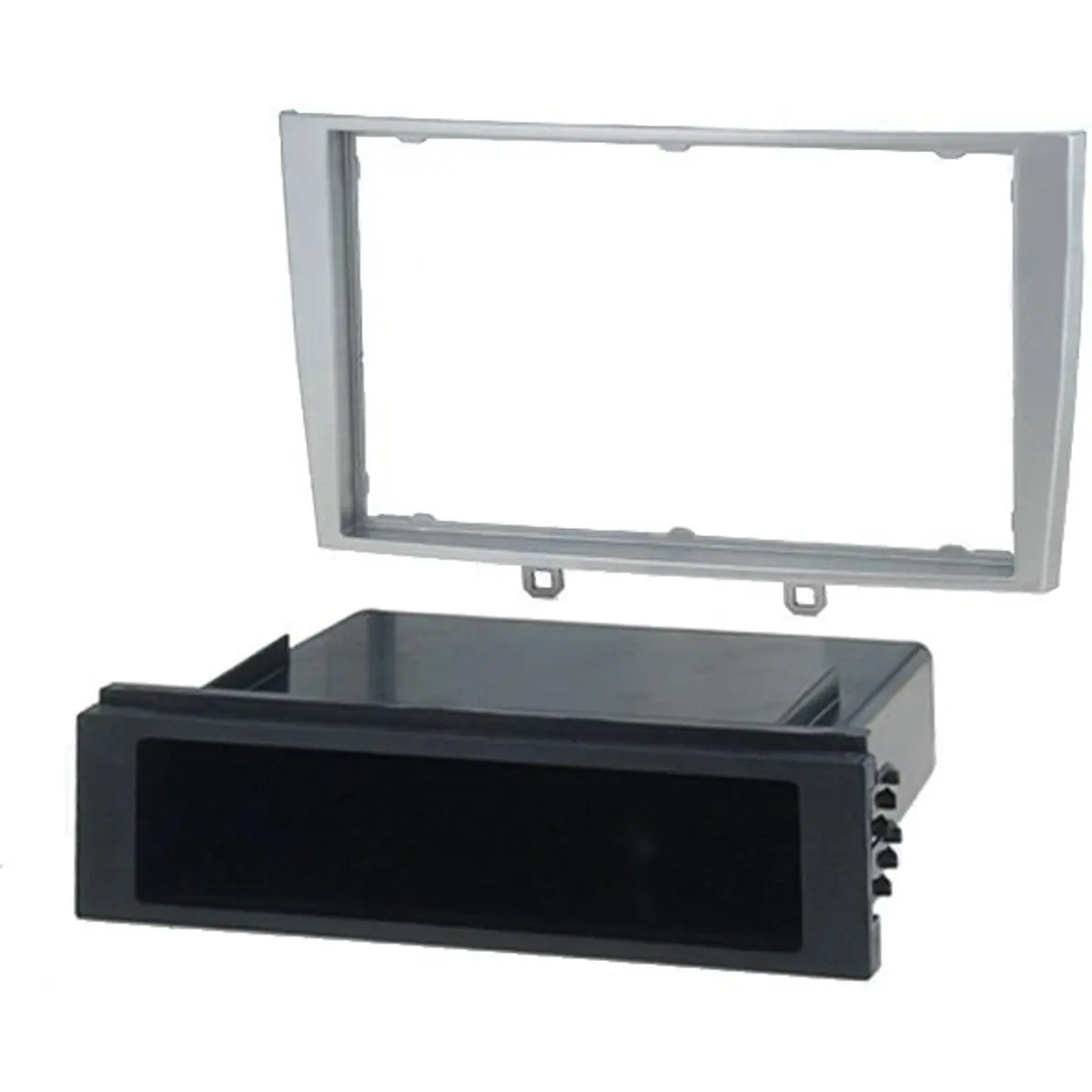 Moldura de 2DIN para auto-rádio, acabamento prata, compatível com os modelos Peugeot 308 (2007-2009) e Peugeot 308 SW (2008-2009). Ideal para substituir a moldura original mantendo o visual interior do veículo e facilitar a instalação de rádios padrão 2DIN, sem alterar o painel.