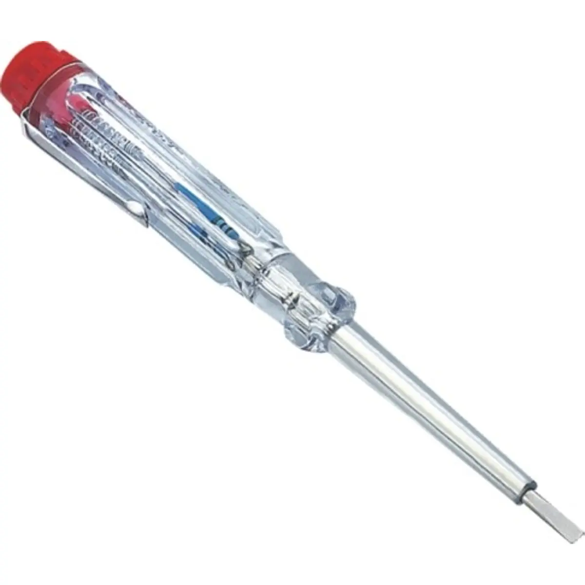 A chave busca-pólos 100..250VAC oferece ponta em aço de 3 mm, com luz indicadora neon e pega em plástico transparente que permite ver a luz em cada posição. Ideal para uso em oficinas, trabalho doméstico ou hobby, facilita a identificação visual de estados elétricos durante operações de manutenção e montagem em painéis, com manuseio seguro e prática. Versátil para inspeção e interligação de contactos em instalações elétricas.