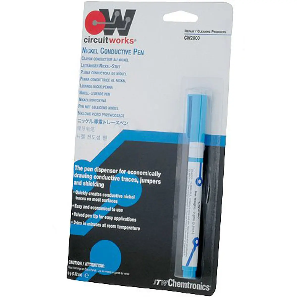 Caneta de tinta condutora para PCB com capacidade de 9ml, proporcionando aplicação rápida e exata. A tinta níquelada é insolúvel em água e seca rapidamente, oferecendo um traço condutor estável em trilhas de PCB com acabamento cinzento. Ideal para prototipagem eletrónica e reparação de PCB, com foco em precisão, durabilidade e resistência à água.
