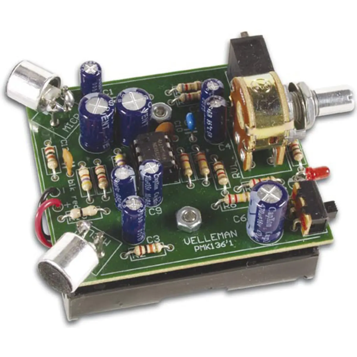 Kit de montagem de amplificador de áudio estéreo compacto e versátil, capaz de amplificar o som 50x. Inclui microfones e altifalantes, controlo de volume e comutador on/off para facilitar o uso em projectos científicos, em casa ou para ver televisão. Alimenta-se com três pilhas AA (não incluídas) e mede 62 x 54 x 44 mm. Ideal para experiências educativas, aplicações de áudio portáteis e montagem simples.