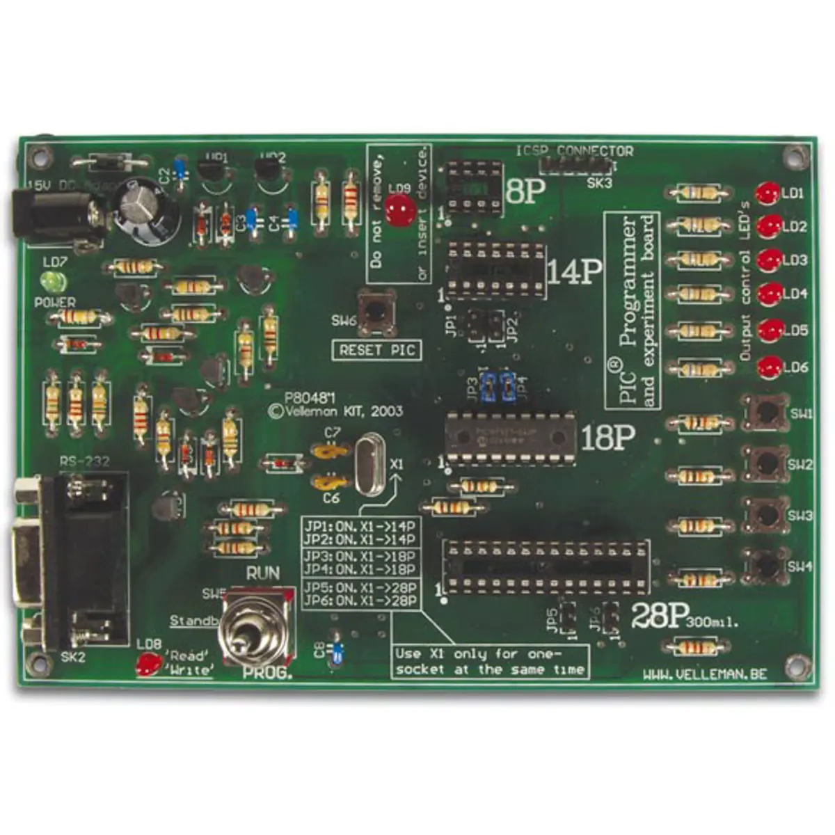 - Suporta 4 diferentes PICs 300 mil.: 8p, 14p, 18p e 28p