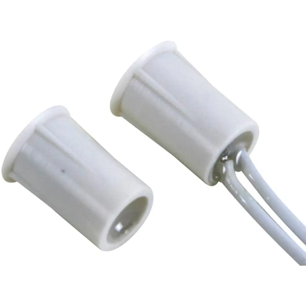Sensor magnético de embutir, com contacto NO (NC quando ativado por íman), ideal para deteção de posição em montagem embutida. Opera a 30 VDC/0,1 A, com fio de 250 mm e montagem de suporte Ø9 mm. Dimensões do corpo Ø9 x 14,5 mm, peso 7 g. Adequado para aplicações de automação, interligação de circuitos e controlo de quadros elétricos, oferecendo deteção fiável com tamanho compacto.