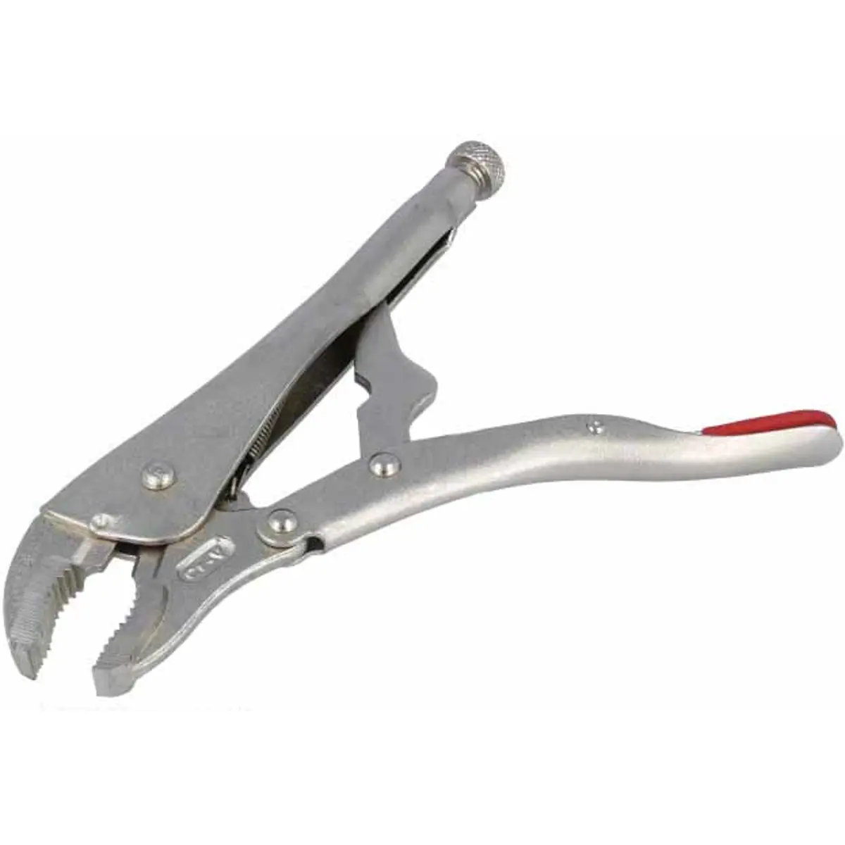 Alicate de pressão com 250 mm de comprimento e abertura ajustável para perfis redondos de 8 a 42 mm e perfis planos de 0 a 30 mm.
