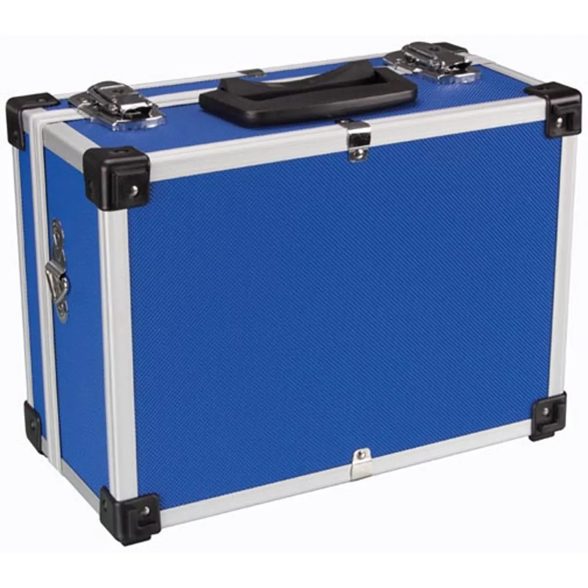 Esta mala em alumínio azul oferece proteção reforçada com cantos reforçados, acolchoamento interior para proteger o conteúdo, e uma prática correia de tiracolo para transporte cómodo. Possui fecho com chaves para maior segurança e dimensiona 330x230x150 mm, ideal para viagens curtas. Leve, durável e resistente a impactos, é adequada para armazenar itens sensíveis e ferramentas. Perfeita para uso profissional ou pessoal, combinando robustez com design compacto.