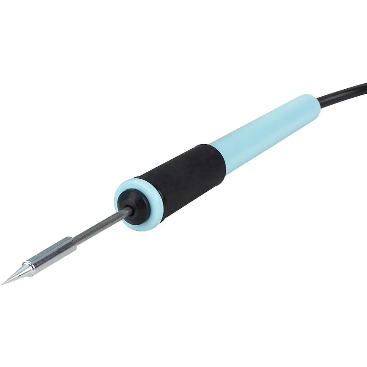 Ferro de substituição para estação de soldadura, com alimentação de 12V, potência de 8W e faixa de temperatura entre 100 e 450ºC. Ideal para reparações de componentes eletrónicos e trabalhos de soldadura de precisão, oferecendo controlo estável da temperatura, aquecimento rápido e compatibilidade com estações de soldadura padrão, sem referência a marcas.