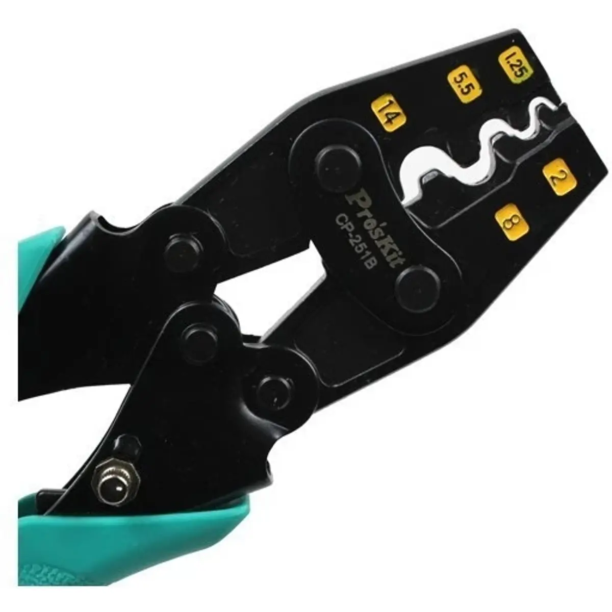 Pro'sKit CP-251B é um alicate de cravar terminais não isolados do tipo closed barrel, concebido para oferecer crimpagem precisa com esforço reduzido. O novo mecanismo reduz em 35% a força necessária, a boca de pressão é feita em aço AISI 4140 para maior durabilidade e a pressão de cravar é ajustável. Com 245 mm de comprimento, permite cravar terminais de 1,5 a 16,0 mm² com controlo. Ideal para profissionais que procuram fiabilidade e desempenho em trabalhos de ligação eléctrica.
