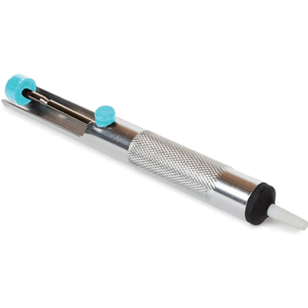 Esta bomba dessoldadora metálica, com corpo em alumínio e acabamento metálico azul, oferece remoção de solda com controlo de calor. Mede 162 mm de altura, diâmetro de 20 mm e peso de 47 g, proporcionando leveza, manuseio estável e durabilidade para trabalhos de solda em PCB. Ideal para montagem e desmontagem com precisão, em ambientes profissionais.