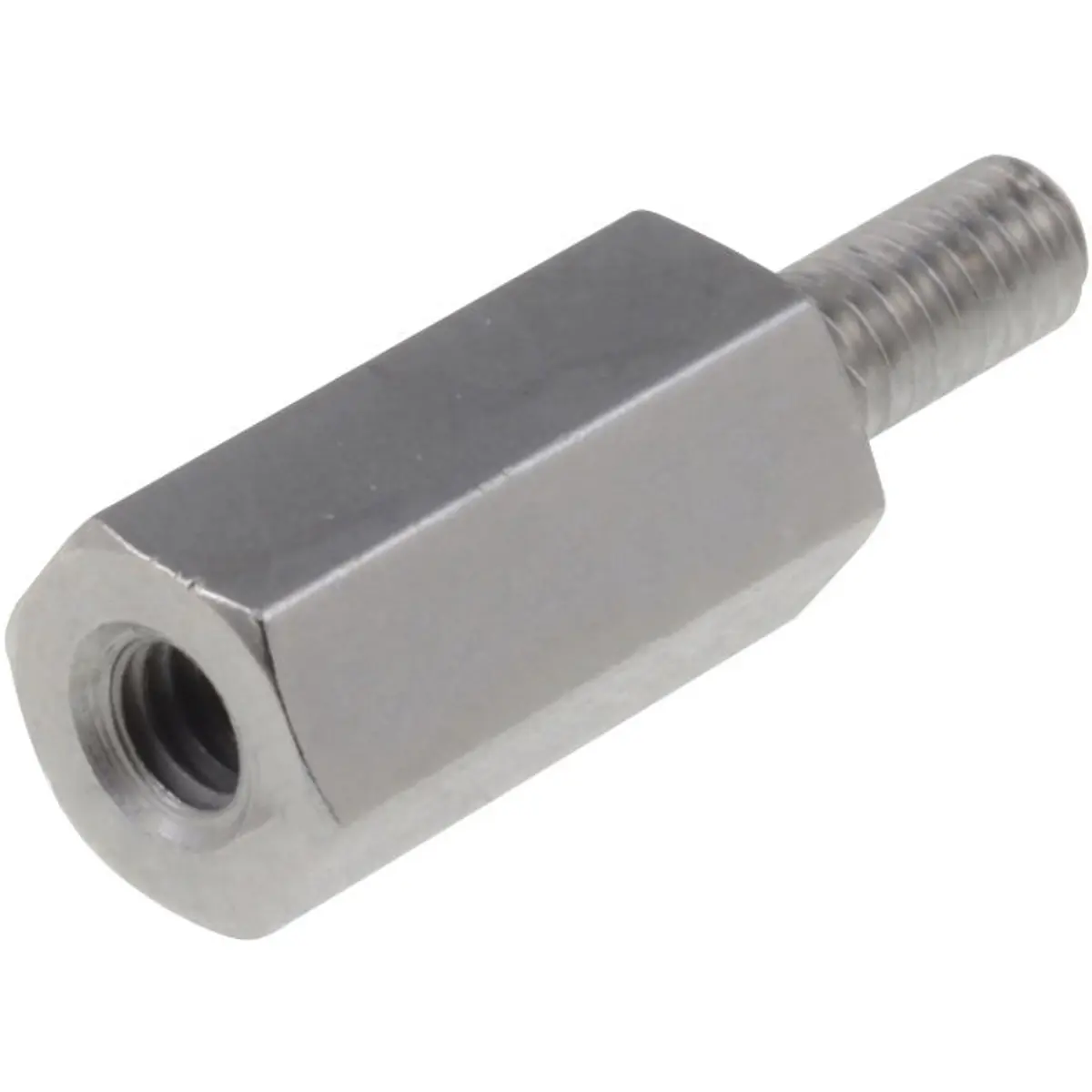 Espaçador fêmea/macho M2.5 em latão níquelado de 10mm, com roscas internas e externas M2.5 e formato hexagonal. A cobertura de níquel aumenta a resistência e a durabilidade, facilitando a montagem com chave de 5mm. Ideal para montagens mecânicas que exigem precisão de espaçamento entre peças com roscas M2.5.