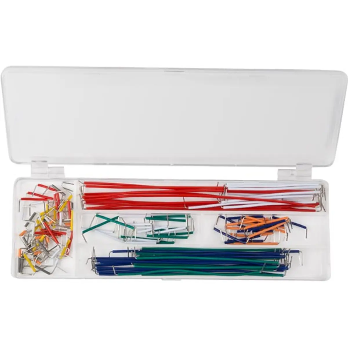 O conjunto Velleman WJW140 oferece 140 cabos de ligação para montagens, disponíveis em várias cores (vermelho, laranja, amarelo, verde, azul, cinzento e branco). Cada cabo tem fios pré-descarnados, com uma tensão máxima de 30V e uma corrente máxima de 3A, ideal para prototipagem, experimentação de circuitos de baixa tensão e ligações temporárias. Perfeito para trabalhos de eletrónica, montagem de protótipos, laboratórios educativos e condução de experimentos com organização de condutores por cor.