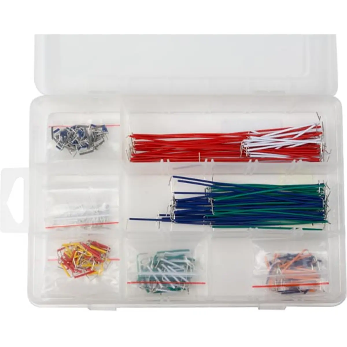 Este conjunto inclui 350 cabos de ligação com cores variadas: vermelho, laranja, amarelo, verde, azul, cinzento e branco, para montagem e prototipagem eletrónica. Os fios são descascados nas extremidades, com tensão máxima de 30V e corrente máxima de 3A, ideais para placas de ensaio, protótipos e ligações rápidas. As cores distintas facilitam a organização de circuitos, reduzindo erros. Perfeito para hobbyistas, estudantes e engenheiros que procuram facilidade de manuseio e disponibilidade de cores variadas para projetos.