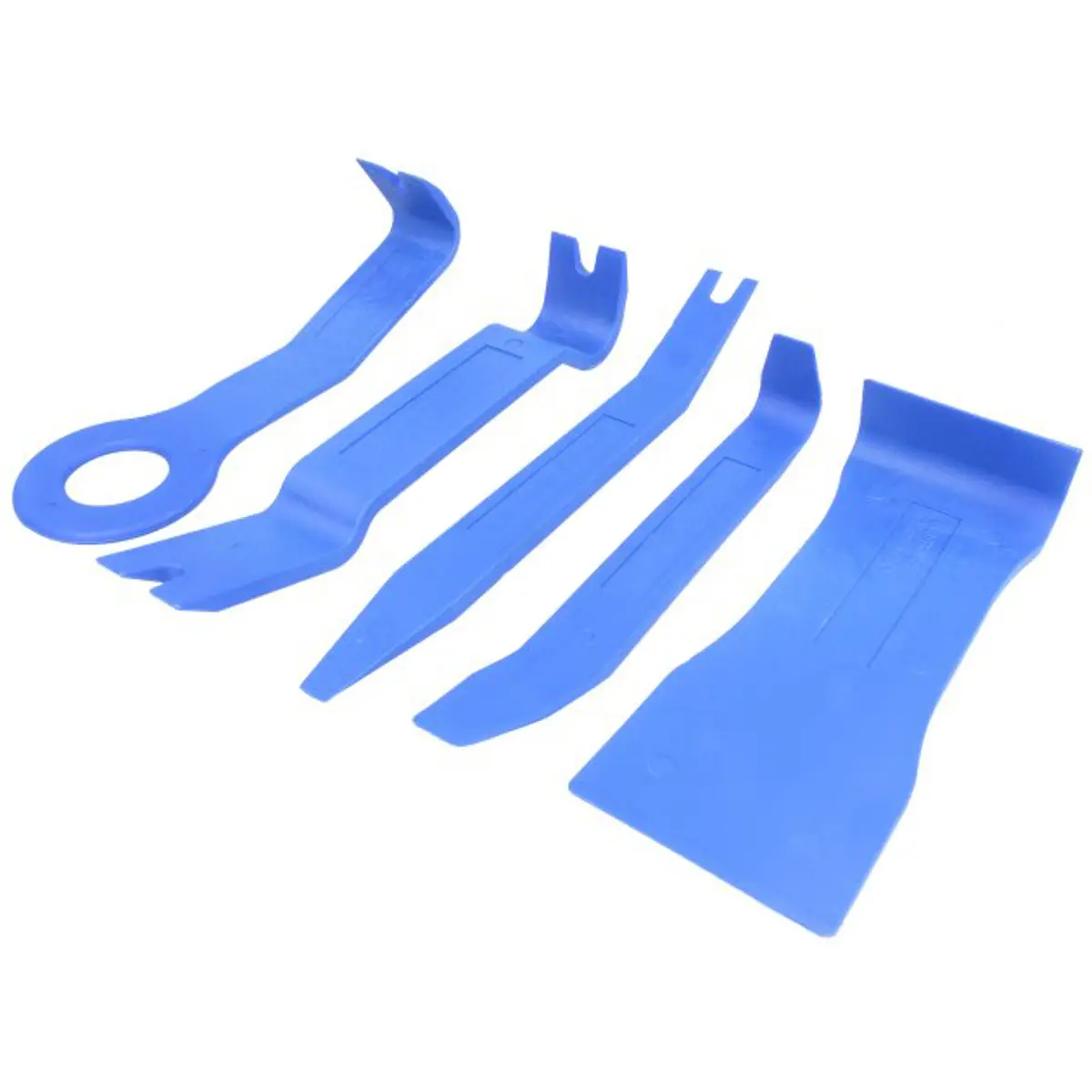 Conjunto de ferramentas de desmontagem para interiores de automóveis, destinado a remover cockpits, guarnições e molduras sem danificar a superfície. Fabricado em plástico resistente, em comparação com ferramentas metálicas, oferece proteção contra danos. Ideal para oficinas, reparações de automóveis e serviços de montagem de painéis.