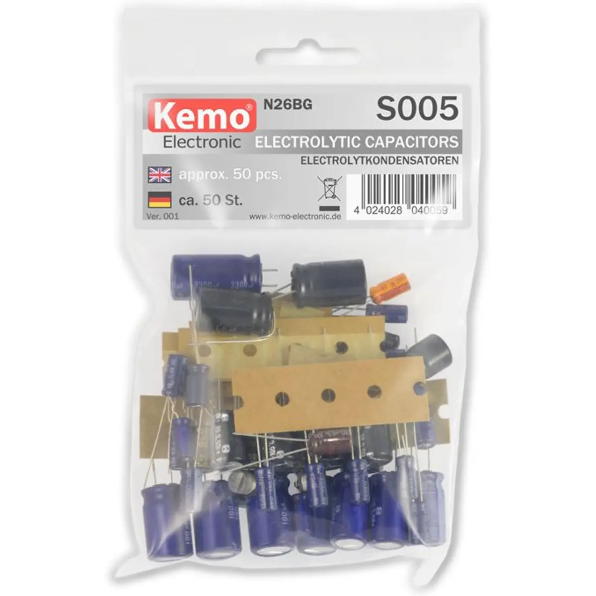 Kemo S005 - Kit de 50 condensadores eletrolíticos variados