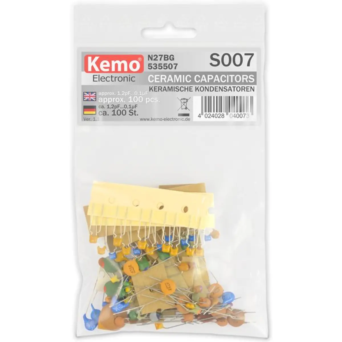 Kemo S007 - Kit de 100 condensadores cerâmicos