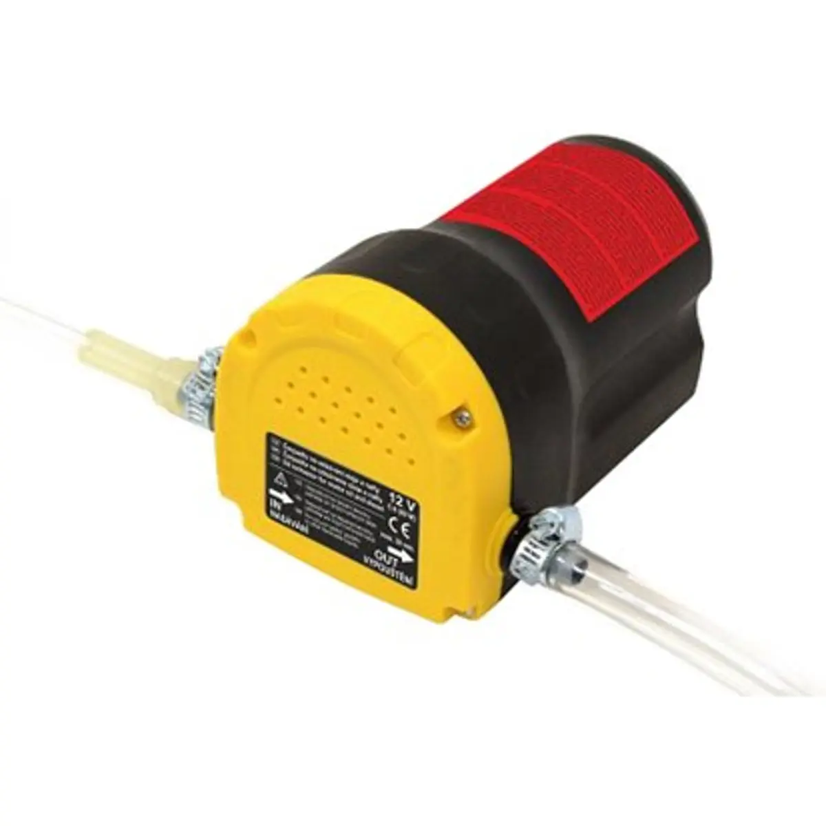 Uma bomba de óleo de 12V para extrair óleo, diesel ou óleo combustível, com alimentação DC de 12V e consumo de 5A, conectável a uma bateria de carro. Ideal para mudanças simples no óleo do motor, não requer bujão de drenagem. Drena o óleo através da sonda de sucção no orifício do jato, até um diâmetro interno de 6 mm, para o recipiente preparado. Fluxo máximo: 3 L/min.