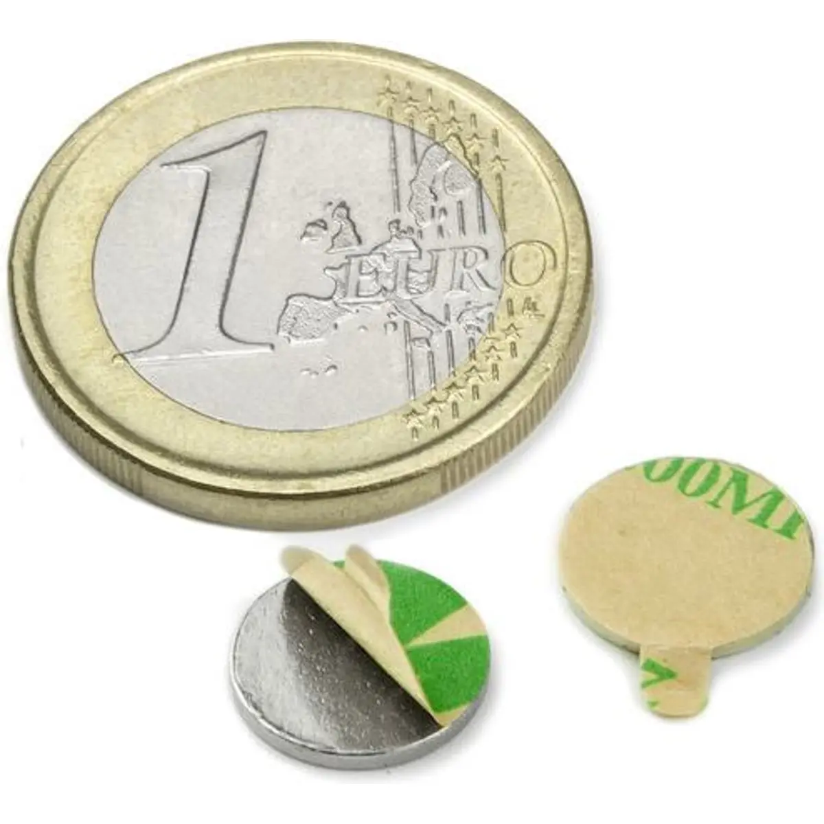 Íman de neodímio redondo com disco autoadesivo. Dimensões Ø10 x 1 mm, magnetização axial, revestimento Ni-Cu-Ni, adesivo 3M 467MP, peso 0,6 g e temperatura de trabalho até 80 °C. Oferece força de retenção de aproximadamente 540 g e vida útil do adesivo de cerca de 12 meses. Ideal para fixações rápidas em painéis, gabinetes e suportes, permitindo montagem leve e reposicionamento fácil sem ferramenta.
