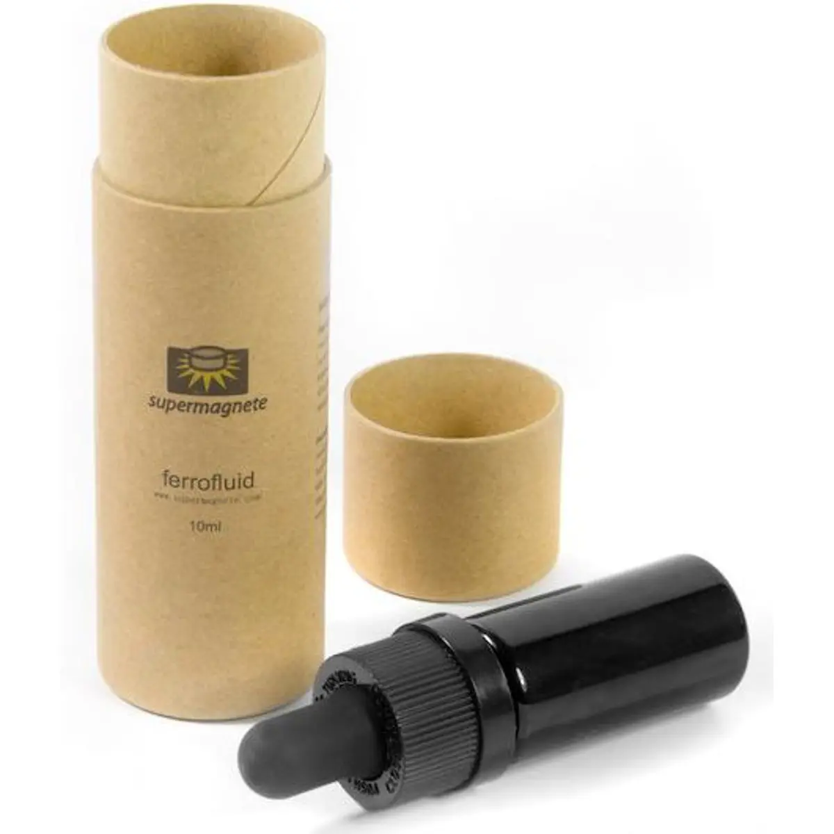 Ferrofluido magnético para experiências, apresentado em frasco de 10 ml com magnetita que reage fortemente a campos magnéticos, formando picos visíveis ao aproximar um ímã. O frasco pesa 36 g e vem com conta-gotas, ideal para demonstrações práticas de magnetismo. Nota de segurança: as manchas não saem facilmente de roupas nem da pele; use roupas velhas ou avental, luvas e óculos de proteção, que não estão incluídos na entrega.