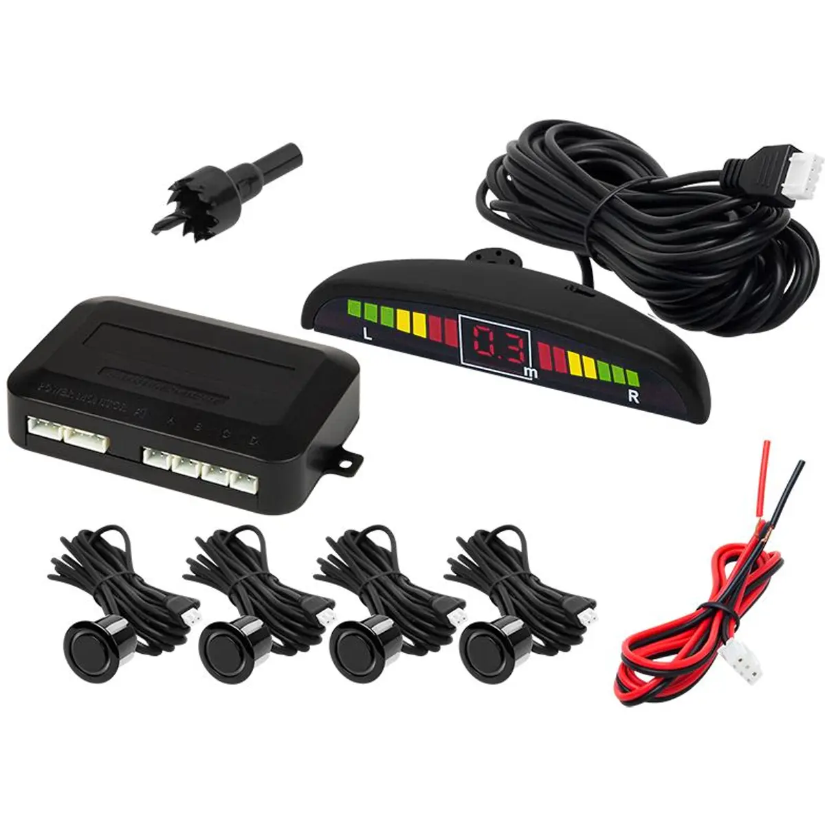 Kit de sensores de estacionamento com display e aviso sonoro.