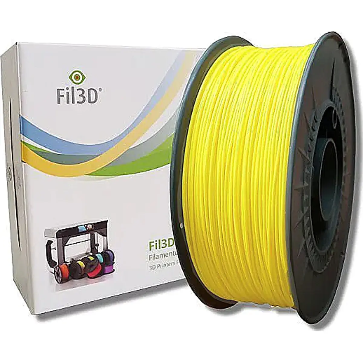 Filamento de impressão 3D em PETG 1,75 mm, amarelo luminoso, com 1 kg, fabricado em Portugal. Matéria-prima de acordo com normas FDA, CE 1935/2004, UE 10/2011 e REACH, adequado para contacto com alimentos exceto com álcool superior a 25% e pode contactar com a pele. Temperaturas típicas de impressão 230°C (±20°C) e mesa a 60°C (±10°C); ventilação recomendada. Oferece boa rigidez, resistência mecânica, fácil impressão, transparência e versatilidade para aplicações diversas.