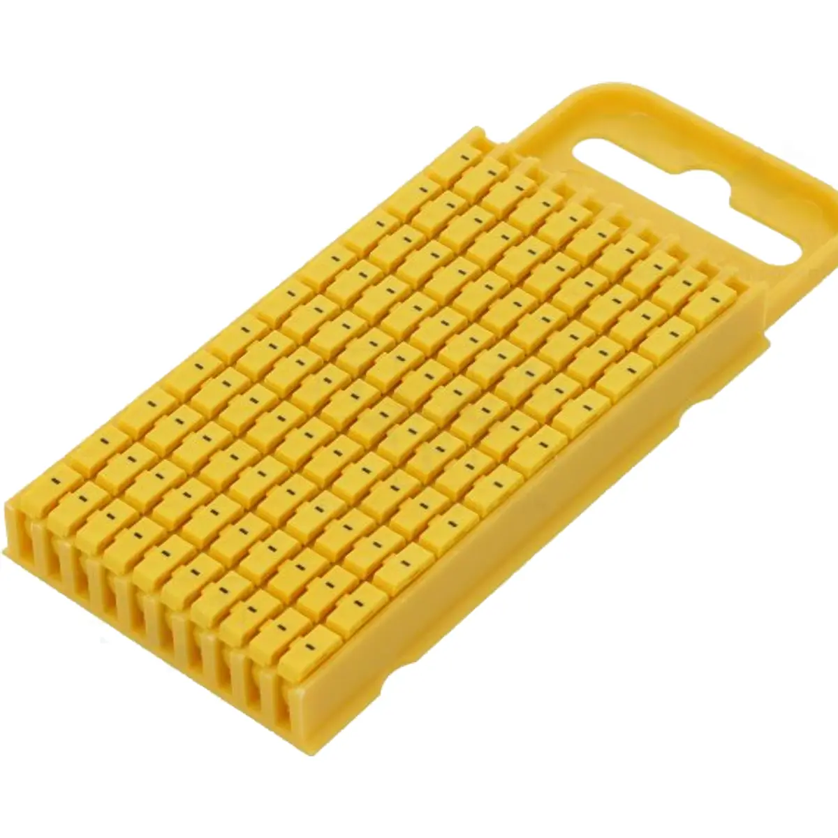 Conjunto de marcadores para cabos em poliamida amarela, compatível com cabos Ø4.3..5.3 mm, que se fixa por encaixe. Adequado para identificar e organizar cablagem, suportando temperaturas de -40 a 85 °C e com inflamabilidade UL94V-0. Ideal para ambientes industriais, facilita a marcação, garantindo visibilidade e durabilidade na gestão de cabos.